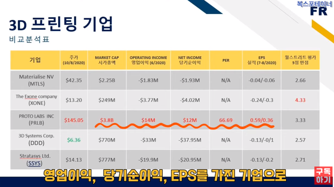 PRNT를 구성하는 대표 기업으로 앞으로 살펴볼 기업은 프로토랩스(prlb), 머티어리얼라이즈(mtls), 엑스원(xone), 스트라타시스(ssys), 3d시스템즈(ddd)등이 있다.