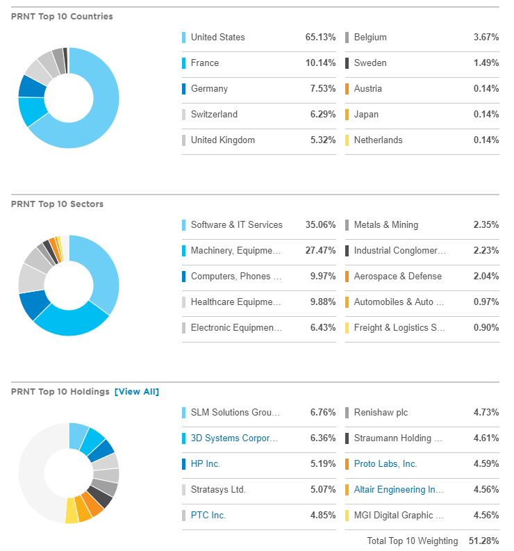둘째, 3D프린팅 기술이라는 것이 소프트웨어, 컴퓨팅, 메탈금속 등등 다양한 영역에 쓰이기 때문에 이 etf도 영역별로도 분산이 잘 되어 있다.