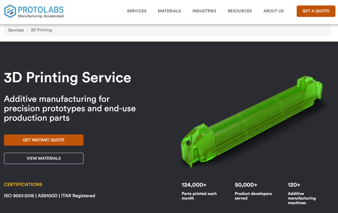 프로토랩스는 소량3D인쇄, CNC가공, 판금 및 사출성형 맞춤형 부품을 제조하는 회사다.